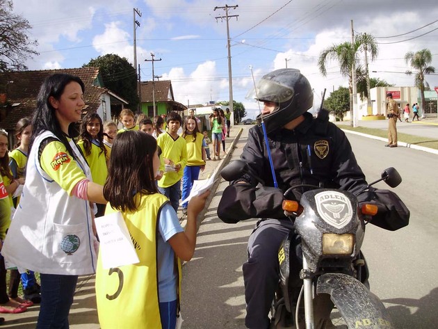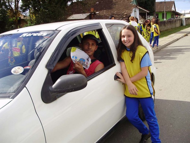 Com apoio da diretora da escola, senhora Mariza Castanho Mendes Arruda, coordenadora pedagógica, senhora Tereza Bux e da PolÃcia Militar os alunos realizaram uma Campanha Educativa, confeccionaram panfletos e distribuÃram aos motoristas alertando quanto ao perigo do não cumprimento das leis de trânsito.