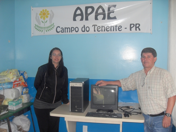 Representando o prefeito Celso Wenski, o chefe da Divisão de Patrimônio, da Prefeitura de Campo do Tenente, Arildo José da Silva, realizou na última sexta (28/04), a entrega de um computador, à atual diretora da recém criada Escola – APAE – Associação dos Pais e Amigos dos Excepcionais de Campo do Tenente, Cleusa Komarchewski. A máquina completa é composta de: CPU, monitor, mouse e teclado), devidamente registrados na setor de patrimônio. O computador ficará cedido à APAE por prazo indeterminado, sob/ termo de Cessão de Uso. A diretora, agradeceu ao prefeito Celso Wenski e comentou que o computador em muito será útil à secretaria daquele educandário.