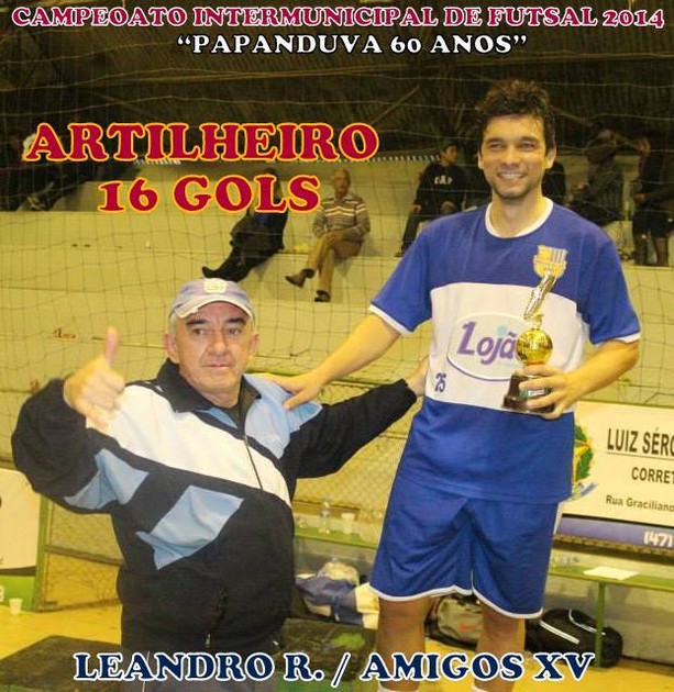O atleta Leandro está defendendo a equipe do Araquari no estadual de futsal, foi o principal artilheiro com 16 gols com a camisa dos Amigos do XV de Rio Negro