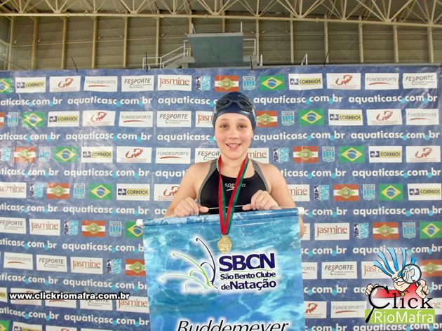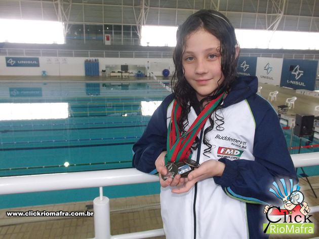 A jovem revelação da natação, a atleta Gabriela de 10 anos de idade, participando neste final de semana (29 e 30 de junho), fez bonito no II Campeonato Estadual Mirim e Petiz de Natação de Santa Catarina, no Complexo da Unisul em Palhoça/SC, conquistando expressivos resultados, trouxe uma medalha de ouro, duas de prata e outras duas de bronze, totalizando cinco importantes medalhas.