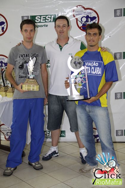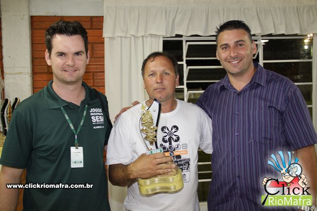 Representantes do Moinho Catarinense, recebendo o troféu de 6º lugar, entregue por Eduardo Martin Pedro (coordenador de atividades físicas do Sesi de Mafra)