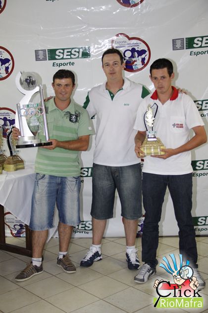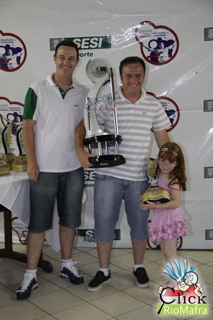 Representantes da Auto Show Chevrolet, recebendo o troféu de campeão geral, entregue pelo Fernando Henrique Mayer (promotor de atividades físicas do Sesi de Mafra e Canoinhas)