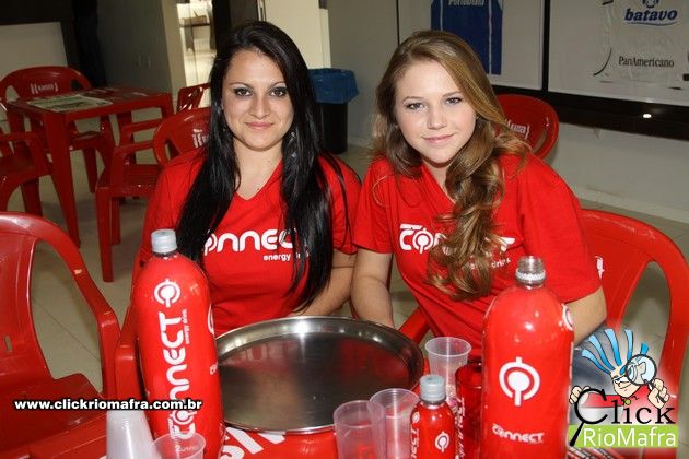 ENERGÉTICO – Abrindo o mercado no planalto norte, expandindo produto fortemente comercializado de Balneário Camboriu, parceira do evento da JR 03 Soccer, esteve apresentando uma nova opção de bebidas à degustação do energético Connéct, pelas simpáticas garotas, Dayara e Bianca.