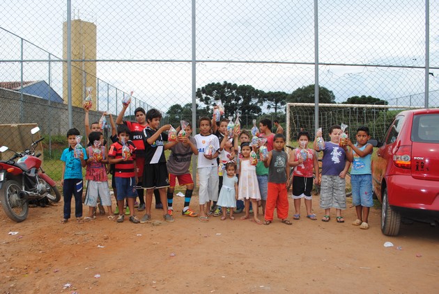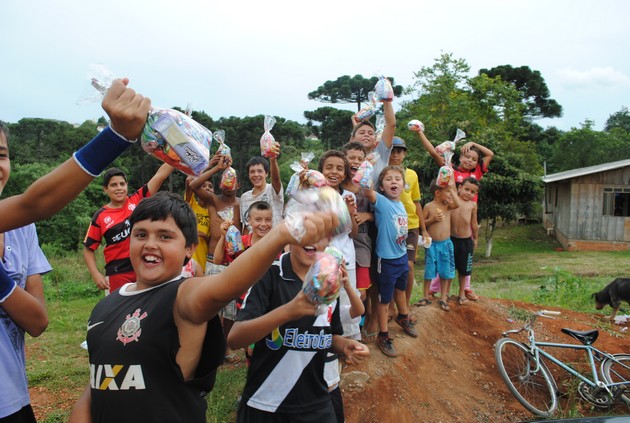 “Sapinho†não esconde a emoção ao falar deste sábado, onde as crianças foram agraciadas com chocolates e cachorro quente. “Isso para mim é minha vidaâ€. Eu joguei futebol por muito tempo, fui criado em comunidade carente. Na realidade, para mim, me emociona muito estar podendo proporcionar isso para essa garotada, onde muitas destas famílias não têm condições de comprar um chocolate para seus filhos e graças ao apoio de alguns abnegados colaboradores (Latina Manutenção, através de Danilo Trindade, Mercado Schimdt, Mercado Maneira, Visam Antenas, Center Collor e Tonho Motos), hoje estas garotadas puderam ter um sábado de Páscoa diferenciado, foi muito gratificante ver o sorriso estampado em cada rosto destas crianças, frisou emocionado este voluntário.