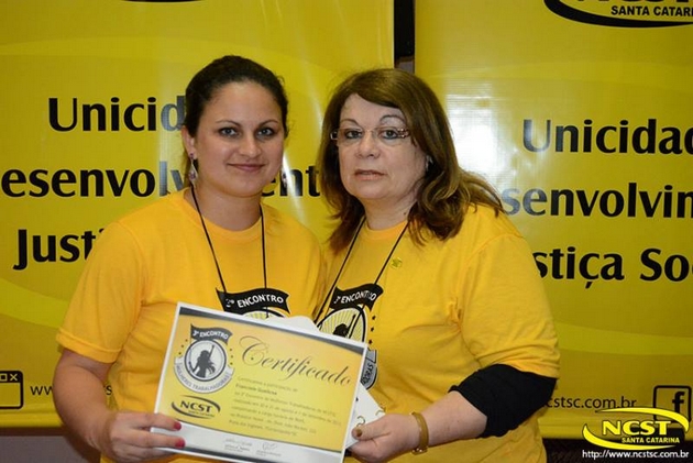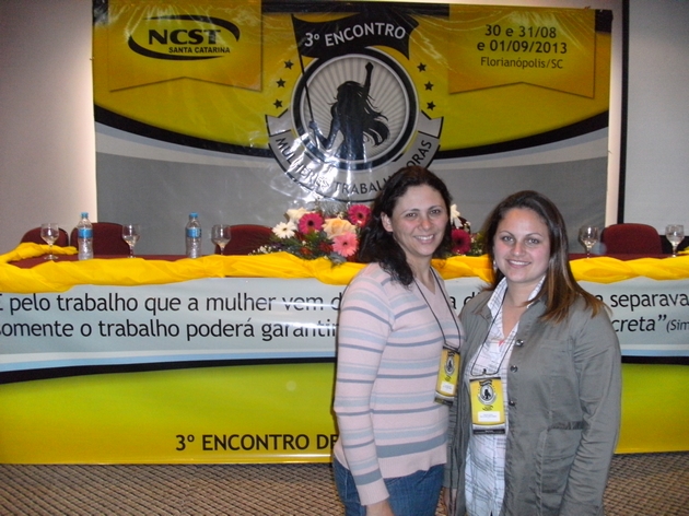 As associadas do Sindicato dos Servidores Públicos Municipais de Itaiópolis e região Franciele Guelbcke (assistente social) e Neusa Marciniak Pamfil (agente de saúde) representaram o sindicato no 3º Encontro de Mulheres Trabalhadoras da Nova Central Sindical de Trabalhadores de Santa Catarina.