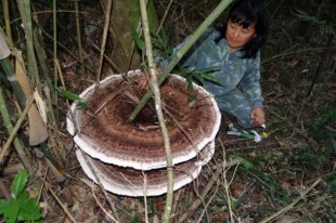 O local onde o cogumelo gigante foi encontrado é de transição entre dois ecossistemas, a Mata de Araucárias e a Mata Atlântica densa do vale do Rio ItajaÃ. A exuberante diversidade de cogumelos da Mata Atlântica da região norte de Santa Catarina pode ser vista no site do Instituto Rã-bugio.