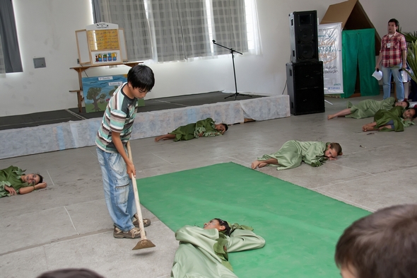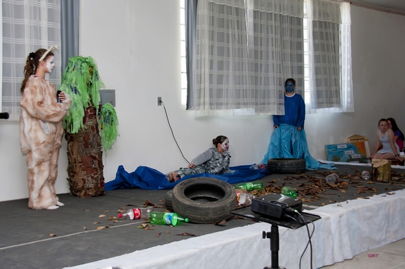 Os estudantes da escola Municipal Rio da Estiva contaram no encerramento da gincana que realizaram teatro para sensibilizar os demais alunos na redução do lixo. A escola também fez a limpeza de um rio na localidade.