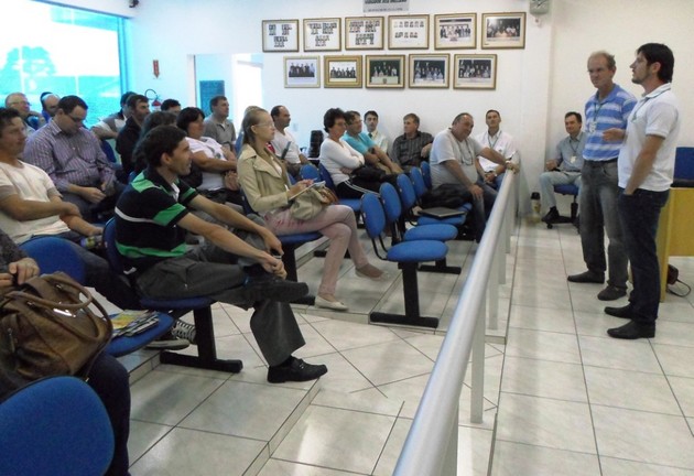 O gerente regional da Epagri Canoinhas, Donato João Noernberg e Valdomiro Sudoski, coordenador do Planalto Norte da Pecuária explanaram sobre o projeto.
