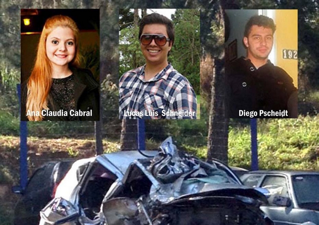 Com o impacto da colisão três passageiros do Hyundai i30, Lucas Luis Stock Schneider, 19 anos, Ana Claudia Cabral, 19, e Diego Pscheidt de Souza, 23, morreram no local do acidente. Outra passageira do veÃculo, Lorreini Harinni de 18 anos, teve ferimentos graves e foi encaminhada para a UTI do Hospital de Mafra.
