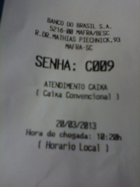 No ultimo dia 20/03/13 ao ir até agência bancária de Mafra para efetuar pagamento (IPVA) de meu veÃculo permaneci na espera por mais de 30 minutos para ser atendido, tendo apenas uma pessoa no caixa. Você programa algo a mais antes de sair de casa ,mas chega no banco para pagar apenas uma conta e perde seu tempo esperando a boa vontade de ser atendido verdadeiro descaso.