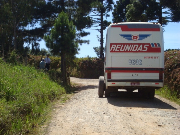 Segue fotos do ônibus da Reunidas que quebrou na localidade de Bom Sucesso devido as péssimas condições da estrada SC 477, que é de responsabilidade da prefeitura municipal, pois o estado repassa verba para a prefeitura para manutenção da estrada, mas faz aproximadamente 150 dias que ela está em abandono total. A administração do ano passado depois que perdeu a eleição abandonou a estrada e a nova administração até agora ainda não passou a patrola em todo o trecho da estrada. As condições estão péssimas, já não tem mais lugar para tanto buraco e veÃculos estão quebrando ao longo da estrada. Já está acontecendo com frequência. A coisa aqui está feia mesmo e parece que não há previsão para fazer a manutenção da estrada, mas a verba do estado está caindo na conta todo mês.