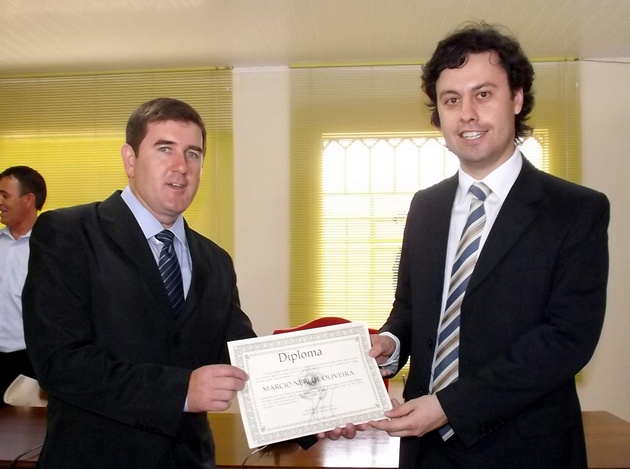 O prefeito eleito de Quitandinha, Márcio Rato (PMDB), juntamente com o seu vice Marquinho da Acarpa, receberam na manhã da última terça-feira (11), o Diploma de Eleitos durante cerimônia realizada na Câmara de Vereadores do município. Os diplomados exercerão suas funções entre 2013 e 2016.