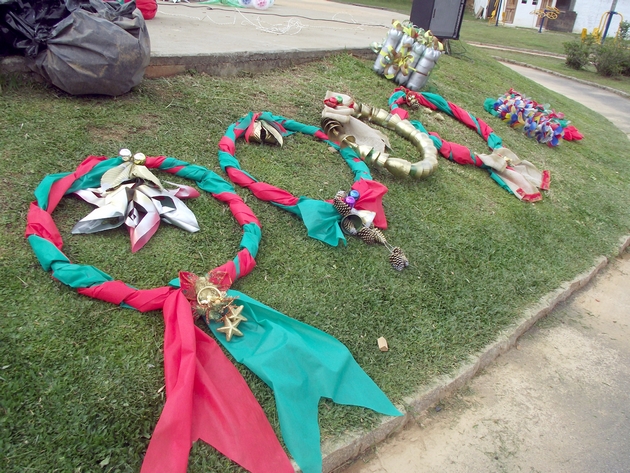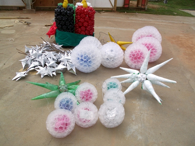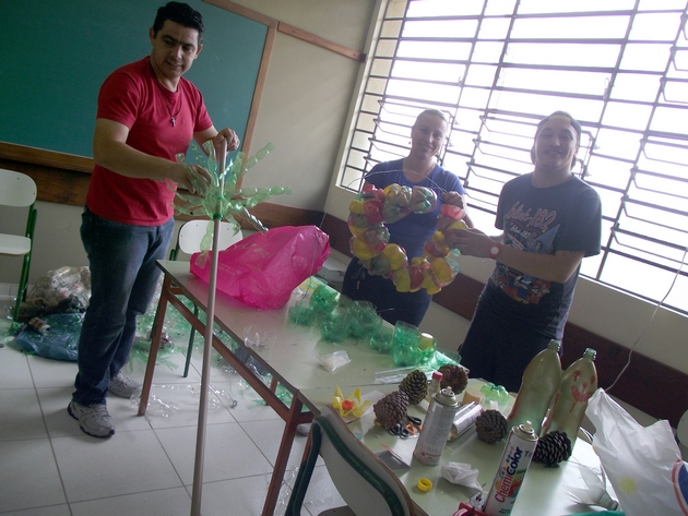 Entre os principais materiais utilizados pelos estudantes, segundo Rogoski, estão às garrafas PET e os copos descartáveis, que com a criatividade dos alunos, acabaram se transformando em árvores de Natal, luminárias, bolas, bonecos e presentes.