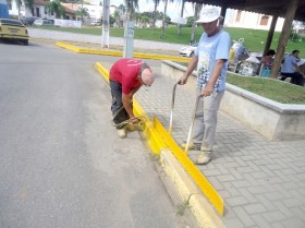 O municÃpio de Quitandinha segue agilizando os trabalhos de reforço de pintura dos meios fios e redutores de velocidade.