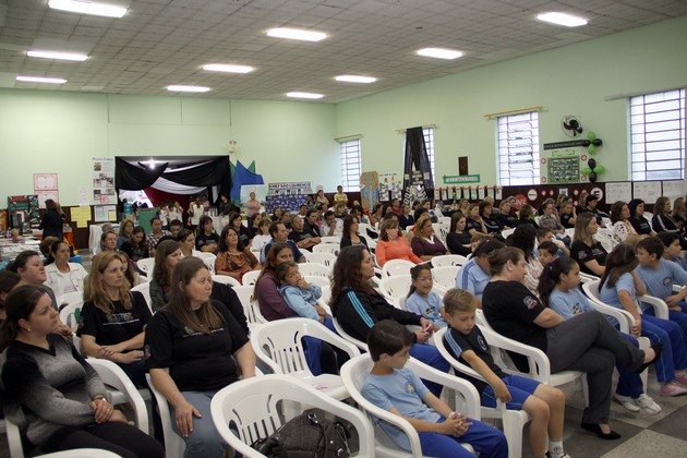 Um dos momentos esperados da noite foi a palestra “Alfabetizar letrando: um desafio para além da sala de aula”, ministrado pela professora formadora do PNAIC– UFSC, Caren Cristina Brichi. Ela se disse muito feliz de ver o comprometimento das professoras municipais e destacou que o encontro era o momento para avaliar o que foi feito e refletir sobre as práticas de ensino. Destacou a função social da escola, apresentou dados referentes aos números de educandos alfabetizados até os 8 anos e aspectos gerais do PNAIC; bem como práticas importantes para o processo da alfabetização.