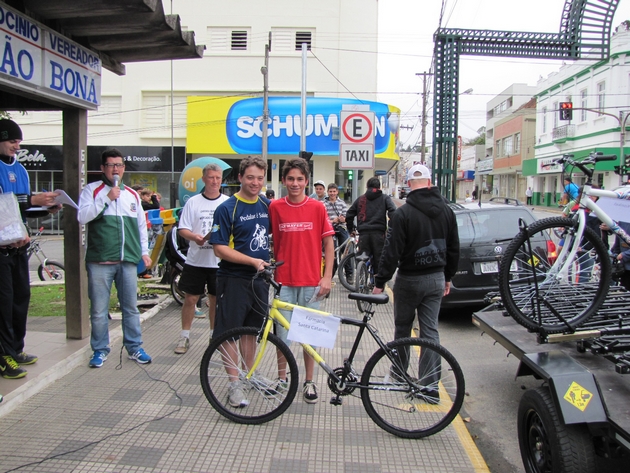 Além de ser uma oportunidade de pedalar tranquilamente pelas ruas, o grande atrativo do 5º Pedala Mafra foram as sete bicicletas oferecidas pelos parceiros do evento. A chegada foi na praça Hercílio Luz, local onde os ciclistas puderam esperar pelo sorteio.