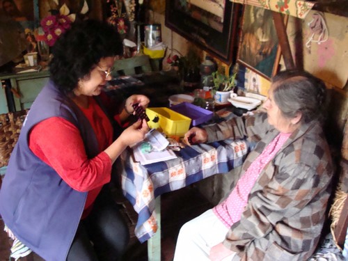 Outra residência da Vila que acompanhamos foi da viúva dona Aparecida Teixeira, 68 anos. Alaides é tida como um anjo de Deus na vida de dona Aparecida. Aposentada, não alfabetizada e sem filhos, freqüentemente recebe a vista da agente comunitária que cuida dos remédios, verificando a data de validade dando instruções de uso. “Considero Alaides mais do que minha filha, na verdade ela é um anjo de Deus”, afirma a aposentada.
