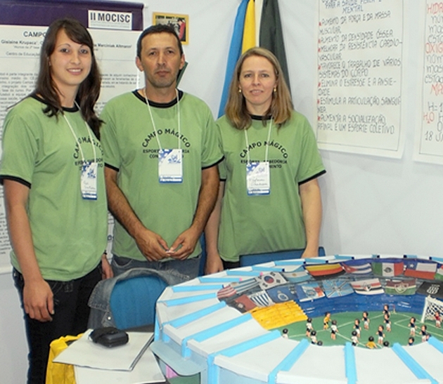 O aluno Gilvan José Gruber, da turma da localidade Avencal do Saltinho apresentou o trabalho Campo Mágico, que relacionou conteúdos disciplinares com práticas desportivas do futebol. Estas atividades fazem parte do cotidiano dos alunos.