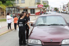 Com faixas explicando que “quanto menos sacolas plásticas você utilizar mais qualidade de vida o meio ambiente vai te dar”, os alunos fizeram um pedágio junto ao semáforo da Praça Lauro Muller e distribuíram “ecobags” (porta lixo para carros) com a finalidade de sensibilizar a população quanto à importância da eliminação das sacolas plásticas. Simultaneamente, foram distribuídos panfletos com desenho de Nicolas Schelbauer, da 5ª/9, sensibilizando quanto ao uso de sacolas reutilizáveis e a importância da preservação da cidade limpa.