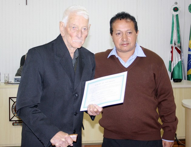 Sezinando foi homenageado na Câmara de Vereadores de Mafra com uma moção de aplausos no dia 07/05/2013