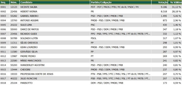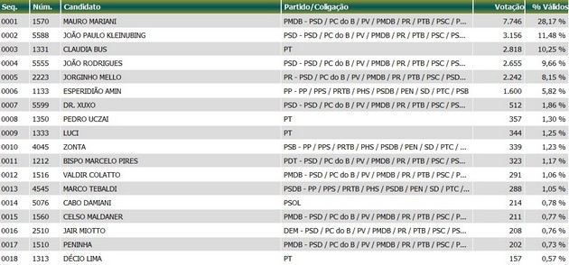 Da mesma forma que ocorreu em 2010, muitos votos foram para fora, conforme mostra o relatório abaixo. Mais informações sobre as eleições serão publicadas em breve no jornal Gazeta de Riomafra e portal Click Riomafra.