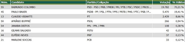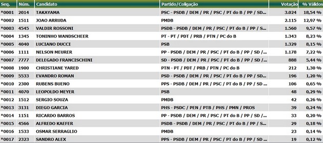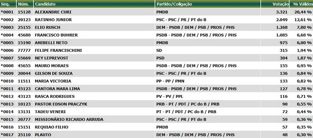 Veja o relatório que mostra os candidatos mais votados em Rio Negro e Mafra: