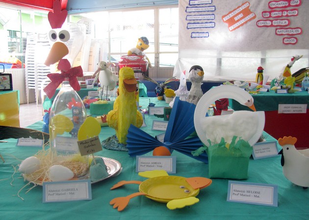 Com o objetivo de incentivar a relação entre pais e filhos, o Centro de Educação Infantil Municipal Comecinho de Vida – “Nathaan Alex Ramos” lançou o desafio dos alunos do Jardim I e do Berçário construírem pequenos objetos para uma exposição com sucata com duas temáticas distintas que vinham sendo trabalhadas em sala de aula: aves e meios de comunicação e de transporte.