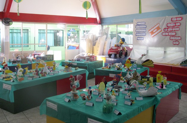 As cinco turmas de Jardim I, com cerca de 25 alunos cada, tiveram o desafio de usar como inspiração a natureza: as aves. Já os aproximadamente 50 alunos do Berçário se responsabilizaram de construir com sucata meios de comunicação e de transporte.