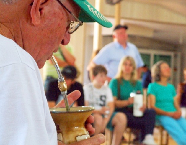 Salão da Igreja Nossa Senhora de Lourdes: recepção feita por famílias da comunidade, com chimarrão, narração de histórias e causos do tempo dos tropeiros, pela historiadora Samieli Czermach e Irineu Czermach.