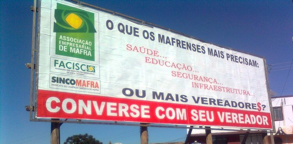 No mês de maio deste ano entidades representativas iniciaram uma campanha contra o aumento do número de vereadores em Mafra; utilizando-se de vários meios de comunicação como: jornais locais, jornais regionais, outdoors, reuniões entre as entidades e comunicação verbal.