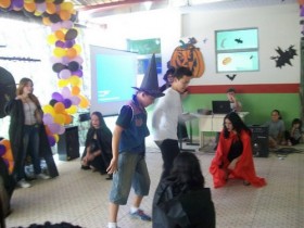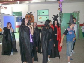 Em “O dia do Halloween” os alunos se caracterizaram de bruxas, dráculas, gorilas, noiva cadáver, monstros e outros personagens arrepilantes.Uma sala de aula foi toda escurecida com um lona preta (com ajuda dos próprios alunos da turma) e decorada com móbiles de bruxas, morcegos, abóboras, luzes coloridas.