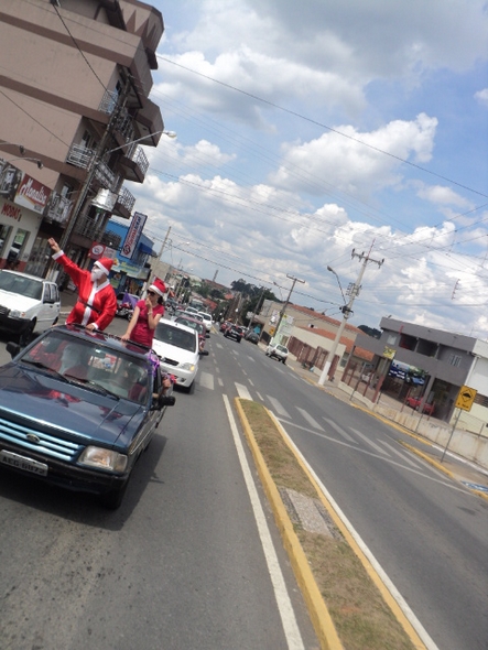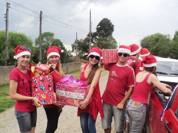 Neste sábado, os jovens que participam do grupo Força Jovem realizaram uma carreata beneficente por diversos bairros de Mafra e Rio Negro com o objetivo de reforçar o espírito natalino, entregando presentes para crianças e cestas básicas para famílias carentes.