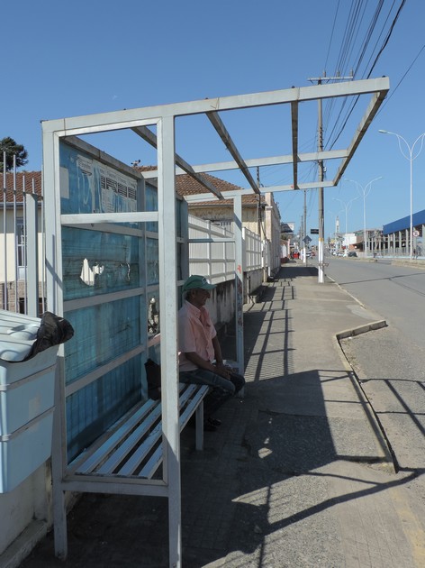 Na rua Tenente Ary Rauen alguns abrigos ainda existe, entretanto em outros apenas as placas sinalizam o local da parada. É assim em alguns locais na rua Gustavo Friedrich na Vila Nova, existem alguns abrigos de dois modelos diferente e em outros locais apenas as placas indicando a parada do ônibus. Na Restinga alguns pontos não tinham banco e outros com cobertura danificada.