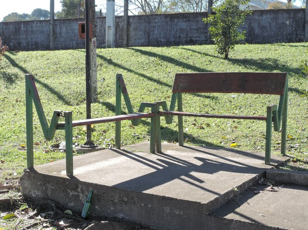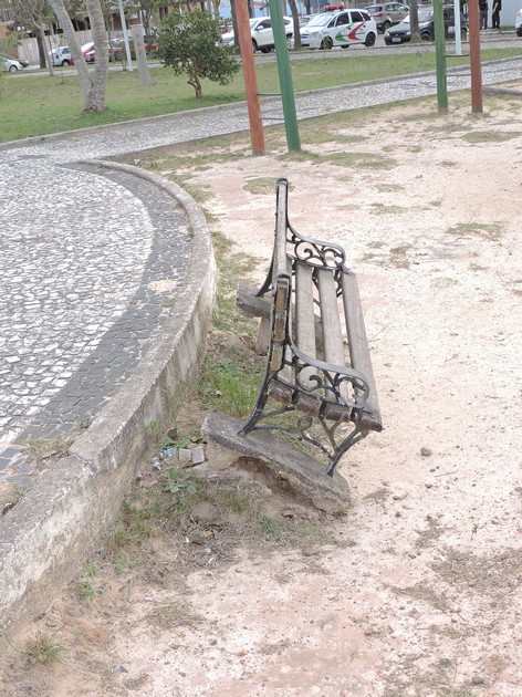 Os bancos também estão quebrados, e os poucos que ainda estão inteiros são da gestão do ex-prefeito Nery Antonio Nader, de 83 a 88, ou seja, com quase 30 anos de idade. Sem falar que em quase todas as praças por onde passamos não há lixeiras adequadas próximo aos parques, o que acaba favorecendo o acúmulo de lixo nestes locais.