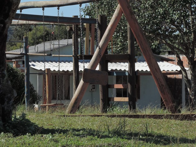 Os brinquedos do parquinho estão quebrados há anos, duas travessias estão rompidas, com cabos de aço aparentes e oferecendo riscos às crianças que por ali brincam, além de balanças e escorregadores danificados.
