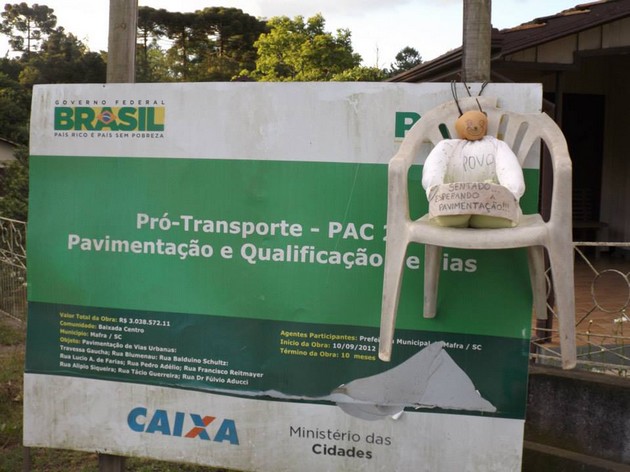 Recentemente, foi a árvore de Natal, plantada num dos buracos das ruas da cidade. Na última semana, um cidadão postou nas redes sociais, algumas das obras do PAC que até hoje não foram iniciadas em Mafra.