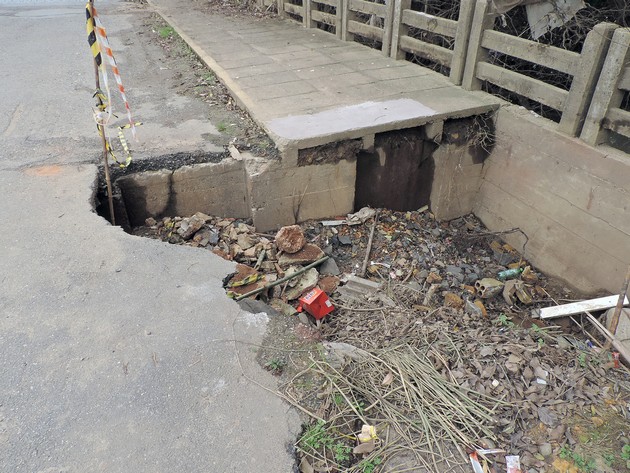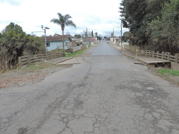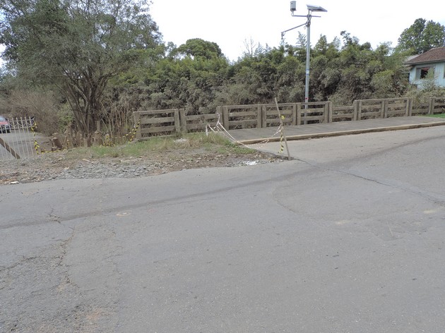 A ponte localizada na rua Jorge Sabatke na Vila Argentina em Mafra teve parte de sua estrutura afetada durante a grande enchente que assolou o município no último mês. Esse não seria o agravante, se não fosse pelo fato de que a referida ponte encontra-se do mesmo jeito 50 dias após a cheia que por ali passou.
