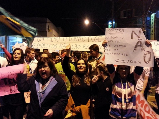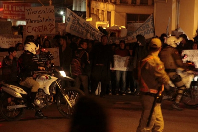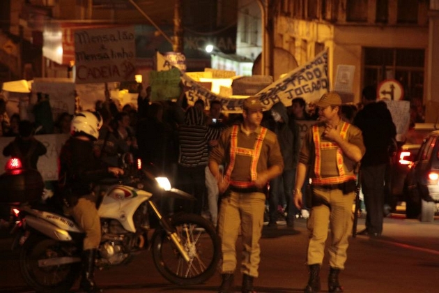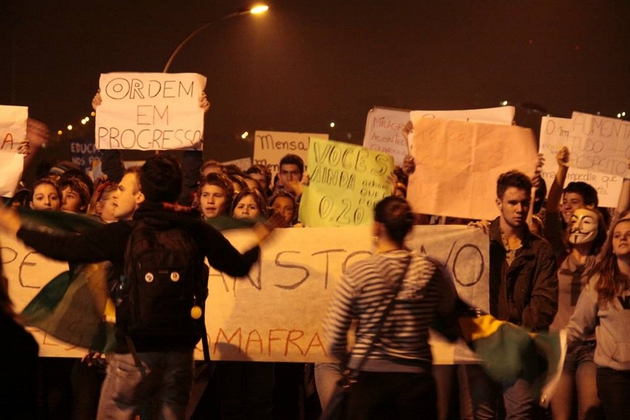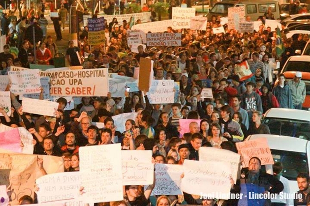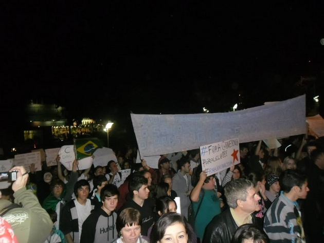 Um bom público marcou presença no manifesto realizado em Riomafra na noite desta quarta-feira. Com a maioria jovem, o manifesto teve início às 17h30 e deu exemplo de civilidade. A Polícia Militar esteve presente durante todo o evento.