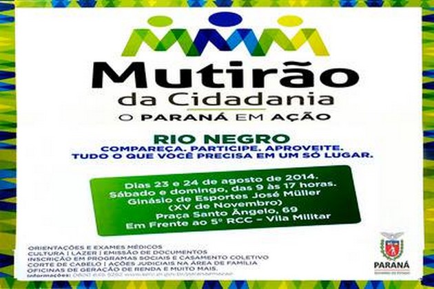 Rio Negro está recebendo o evento Mutirão da Cidadania neste final de semana. São diversos serviços disponíveis gratuitamente:
