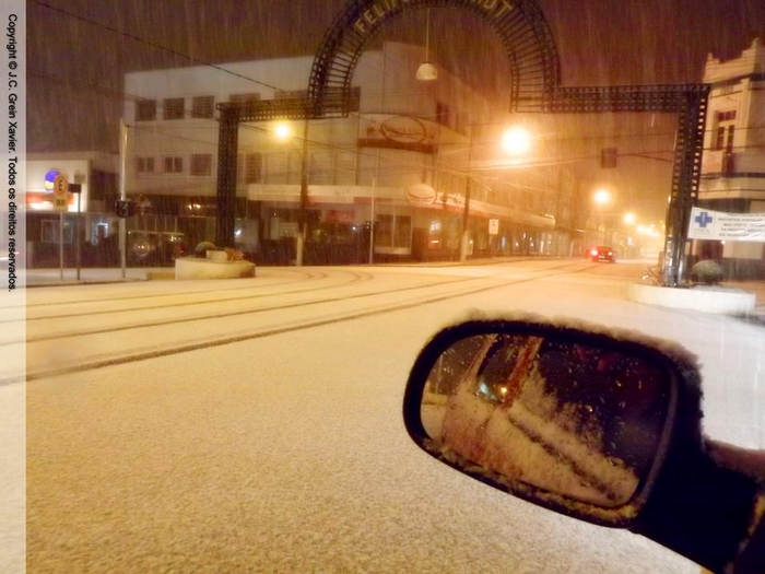 Na madrugada de terça-feira, 23, por volta da 00h30min, os riomafrenses se surpreenderam com o fenômeno nada comum na região: neve. Acostumados com geadas e longos períodos de frios, mesmo assim a população saiu nas ruas para brincar e observar a neve.
