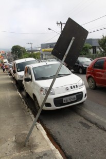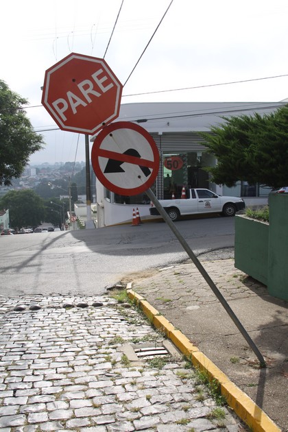 Placas de trânsito do centro de Mafra são danificadas