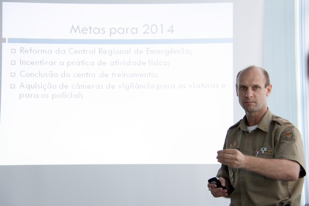 Durante a coletiva, foram apresentadas as metas da PM para 2014: “nós temos como prioridade a reforma do nosso centro de emergência, recentemente recebemos do governo de Santa Catarina 10 câmaras para auxiliar no combate ao crime, porém antes de instala-las precisamos reformar o nosso centro de emergência†– explicou o comandante.