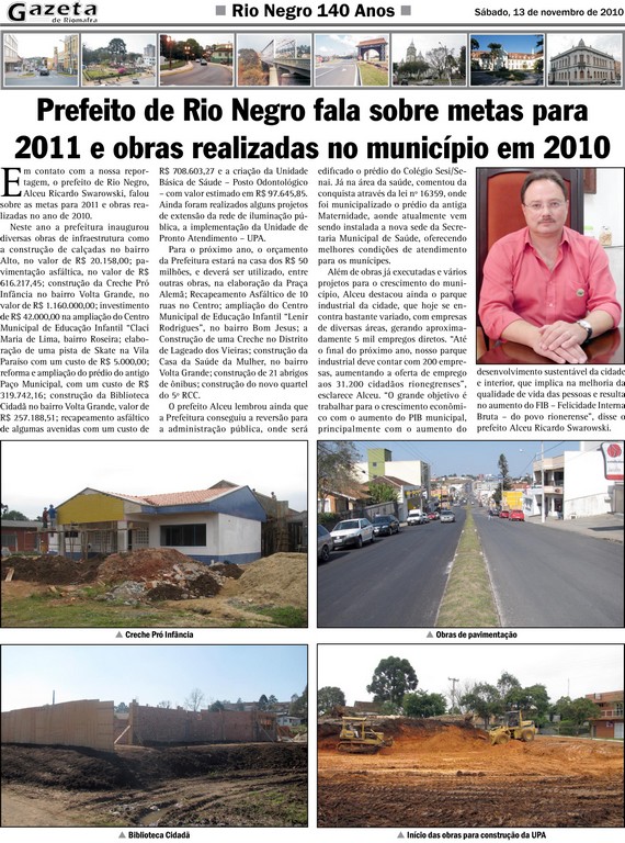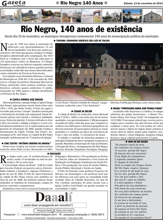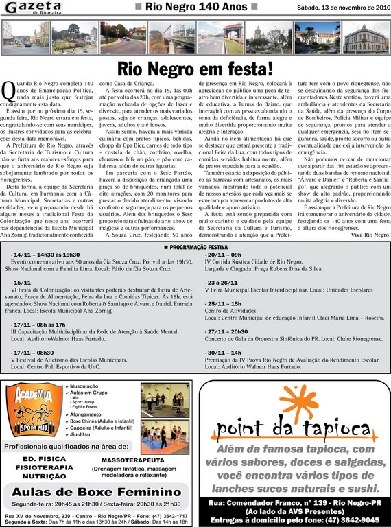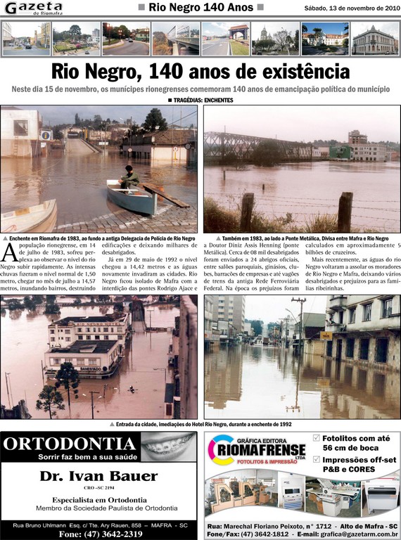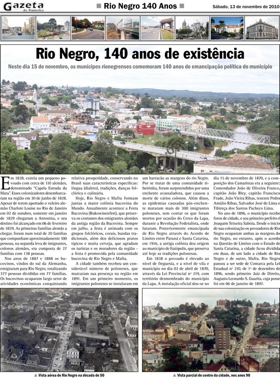 Rio Negro, 140 anos de lutas, conquistas e história Publicado por Gazeta de Riomafra - 15/11/2010 - 12h18 - Publicidade -