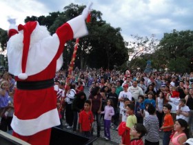 Diante do Antigo Paço Municipal, o Coral Univali alegrava com canções natalinas, cerca de cinco mil pessoas que ocupavam a Praça João Pessoa. A chegada do Papai Noel ocorreu em carro aberto, acompanhado do prefeito e de sua esposa, acenando para os presentes.