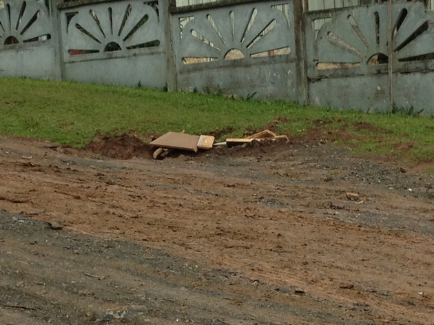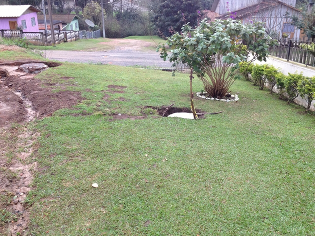 De acordo com informações de moradores, não foram colocadas as tampas e os ferro necessários, padrão utilizado pela empresa, e no lugar só existe um tampão de concreto. Em volta deste tampão, a chuva está minando ao redor e com isso formando um grande acumulo de água.