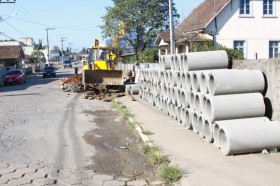 A rua Professor Gustavo Friedrich, principal via do bairro da Vila Nova, começou nesta semana a receber tubulações para águas pluviais. Inicialmente serão colocadas manilhas de 40 centímetros de diâmetro, em uma extensão de 200 metros, da esquina do Supermercado Mig até a lanchonete Ponto Stop, trecho em que o calçamento está danificado em razão da infiltração de águas.