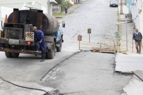 Na Rua Professora Maria do Espírito Santo está sendo feita a substituição da tubulação, trocando as manilhas de 40 cm de diâmetro por manilhas de 60 cm, desde o rio da Lança até a Rua Mathias Piechnick, na altura da Caixa Econômica Federal. Posteriormente será feita a pavimentação da via. Para esta obra, no último sábado foi realizada a troca da tubulação da Rua Marechal Floriano Peixoto, quando a via ficou interditada.