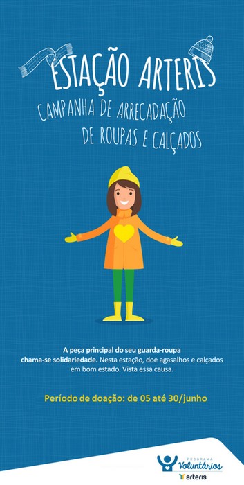 Esta é uma ação da Arteris com o objetivo de ajudar pessoas em situação de vulnerabilidade ao enfrentarem os dias frios do inverno. A Arteris Planalto Sul possui entidades parceiras localizadas em cidades às margens da BR 116, que estão cadastradas junto ao comitê de voluntariado da empresa, para serem beneficiadas com a campanha.