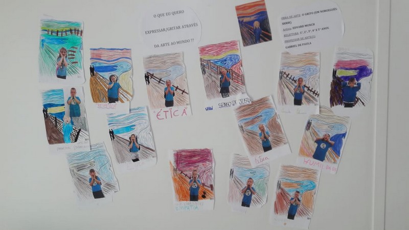 A partir deste principio, o professor Gabriel de Paula trabalhou com seus alunos do 1º ao 5º ano da EMEB Augusta Vitória uma atividade realizando a releitura da obra ‘O grito’. “Não se trata de um projeto, mas um trabalho realizado em aula. Foi resultado dos estudos de sala, da minha disciplina de arte”, explicou o professor que também desenvolveu esta atividade em outras duas escolas.