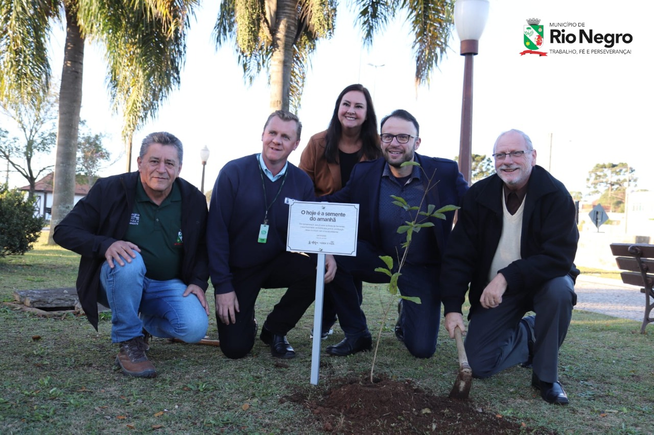 Na tarde desta quarta-feira (29), em ato simbólico, foi plantada uma muda de ipê amarelo na Praça Alemã, em Rio Negro, em comemoração aos 20 anos do projeto “Bolsa de Sementes” no município. O projeto integra as ações do Programa Verde é Vida, que atua nos âmbitos da educação socioambiental e rural, da Associação dos Fumicultores do Brasil (Afubra).